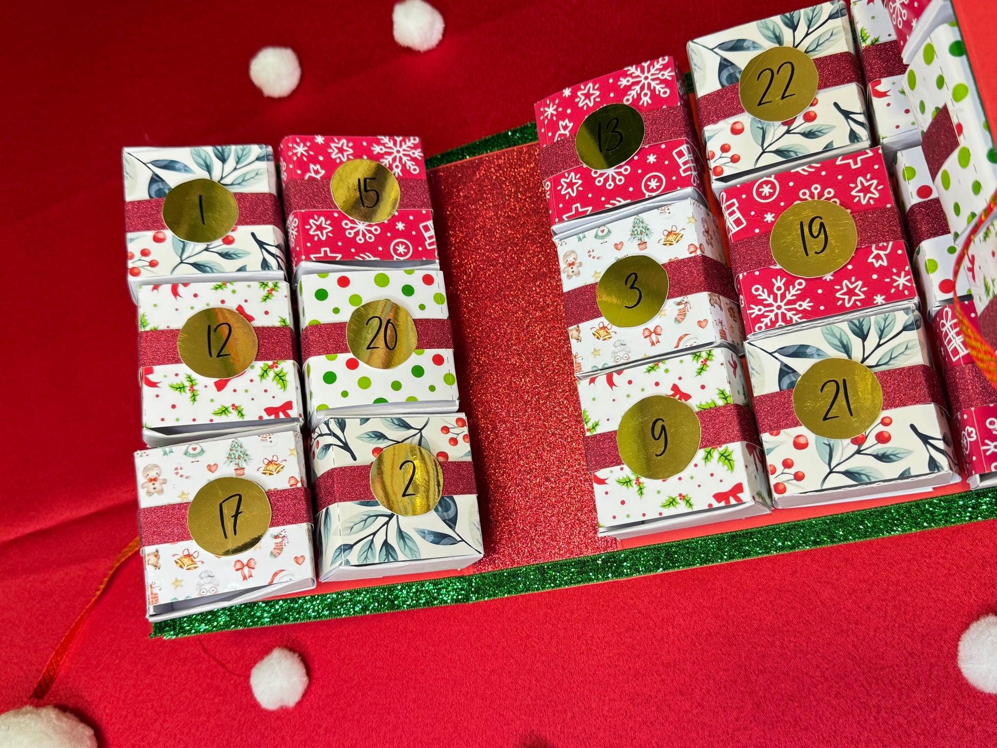 Benvenuto nel magico mondo del nostro Calendario dell'avvento artigianale! Realizzato interamente a mano, questo capolavoro si apre come un libro incantato, rivelando 24 scatoline pronte ad accogliere le tue sorprese natalizie. Ogni dettaglio è curato con amore e dedizione, rendendolo un'opera unica e speciale. Personalizzalo con i tuoi dolcetti, piccoli tesori o messaggi affettuosi per trasformare l'attesa del Natale in un'esperienza indimenticabile. Un regalo che unisce artigianalità, bellezza e la gioia di contare i giorni insieme a chi ami.