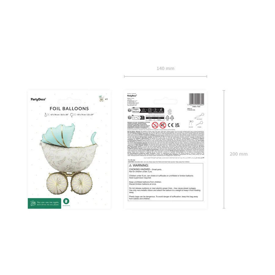 Elegante palloncino sagomato a forma di carrozzina bebè. Misura: 67x96cm. Fornito confezionato.