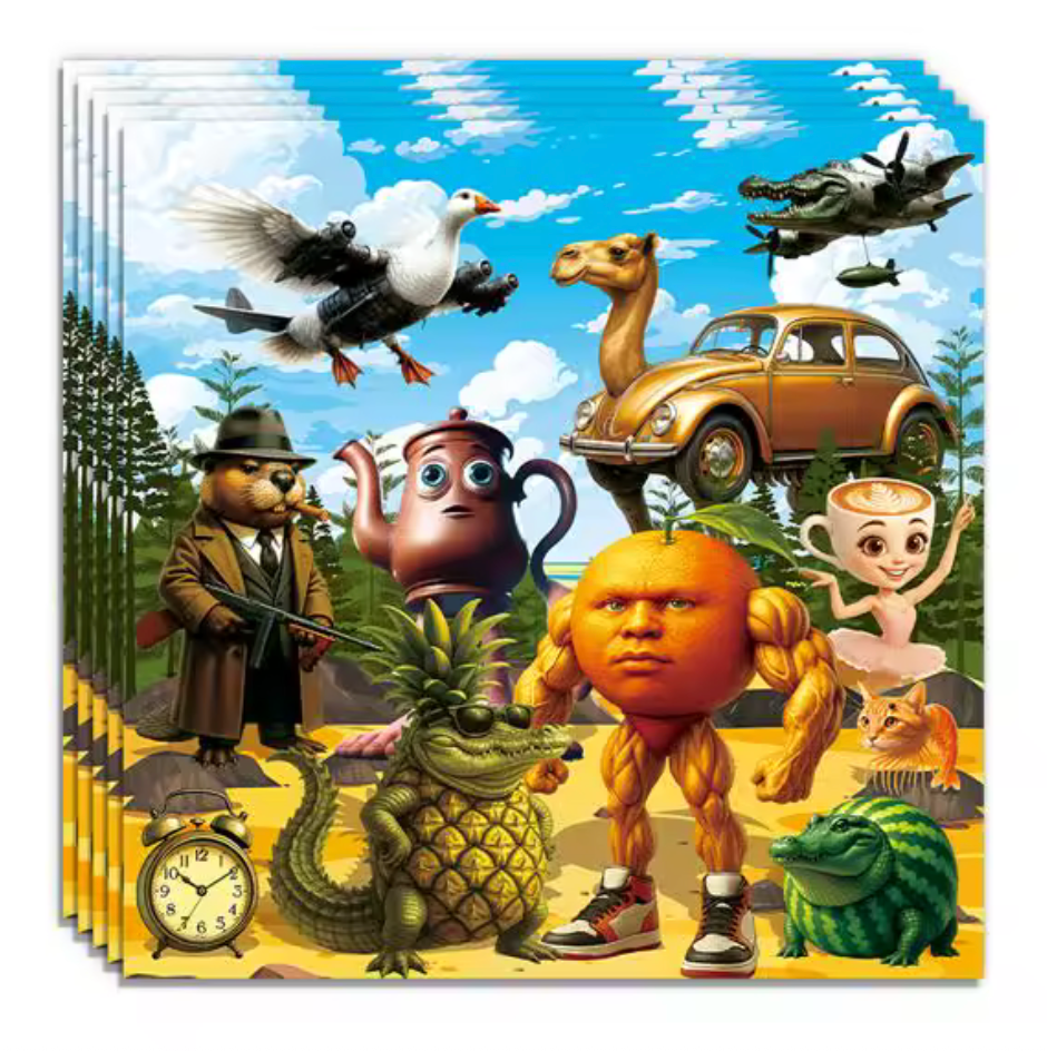 Trasforma la tua tavola in un'esplosione di stile con questi tovaglioli in carta Brainrot! Perfetti per feste tematiche e compleanni, combina praticità e divertimento.